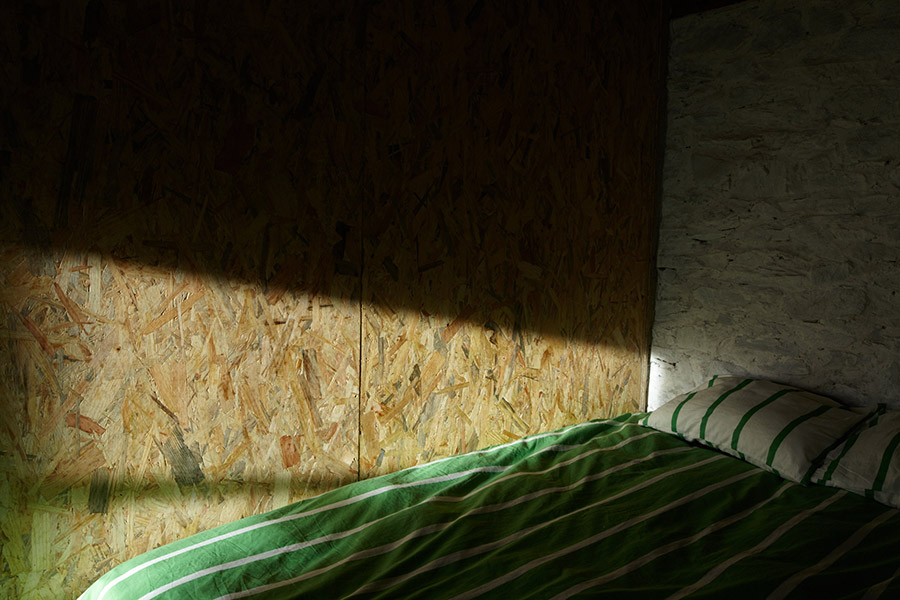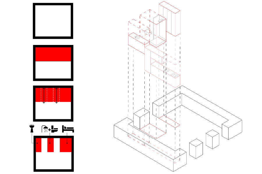 Cocina aseo y dormitorio se incorporan como un mueble que se apoya en su propio forjado para no sobrecargar las vigas de madera.