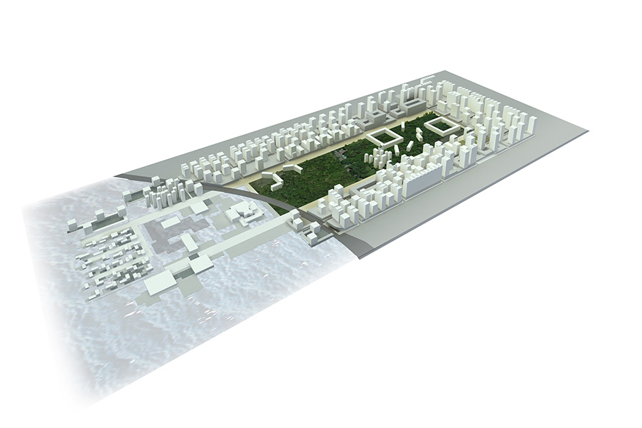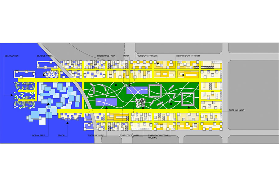The site consists of a one to three proportion rectangular plot with the shortest side facing the sea coast. The aim of the proposal consists of improving this situation by creating a big hybrid park. Thus, we propose three new fronts that balance the quality of the future blocks.