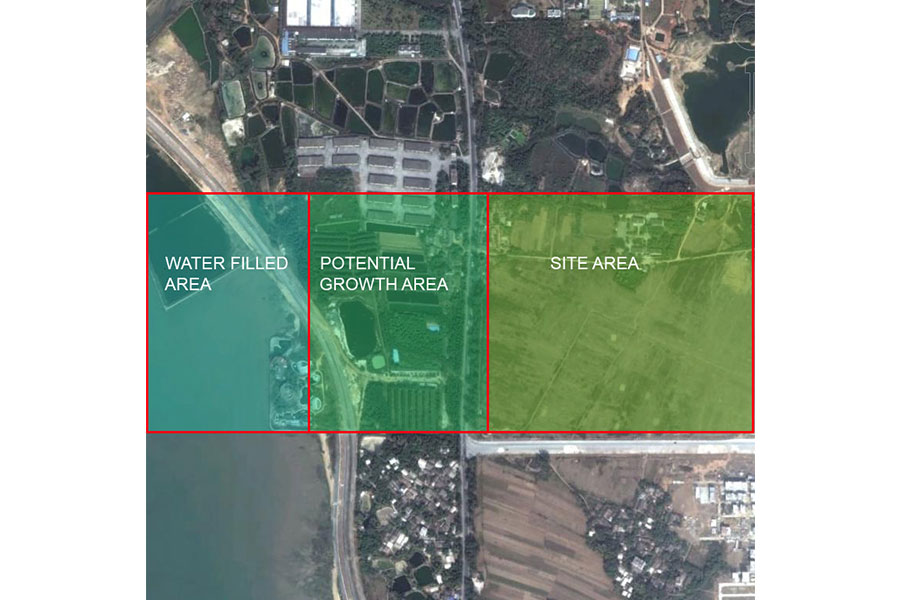 The site consists of a one to three proportion rectangular plot. The shortest side faces the sea coast.